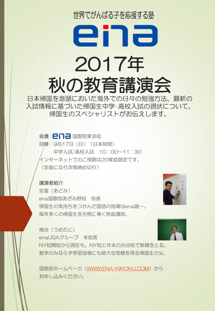 ☆インターネット視聴可能☆2017年☆秋の教育講演会のお知らせ☆