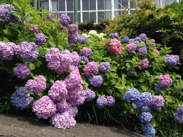 実際に校舎に足を運んでみたところ、色とりどりの紫陽花が早速出迎えてくれました。