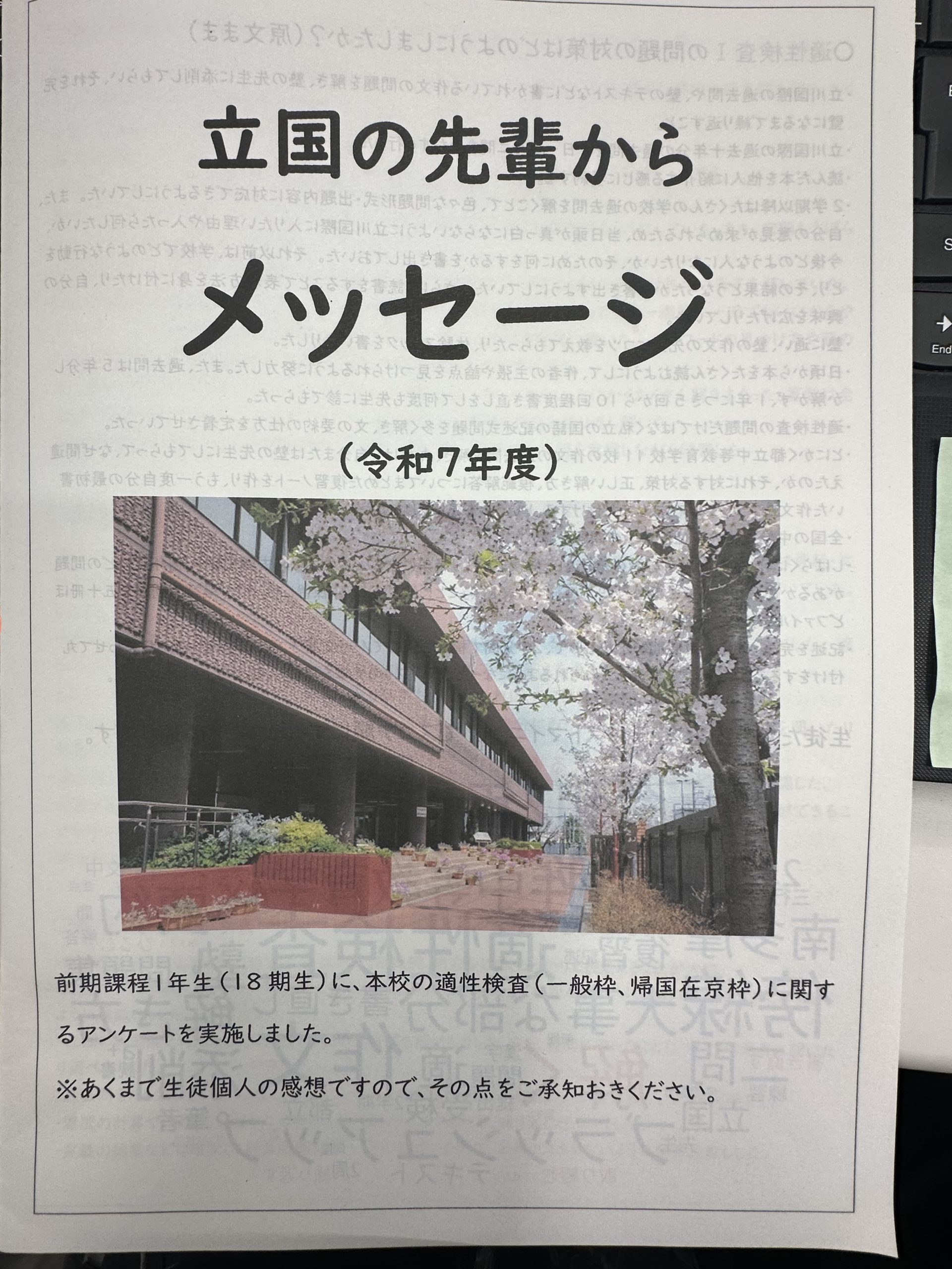 実際に合格した先輩の言葉は、現在立川国際合格に向けて頑張っている生徒にとって大きな勇気と希望を与えてくれるものです。