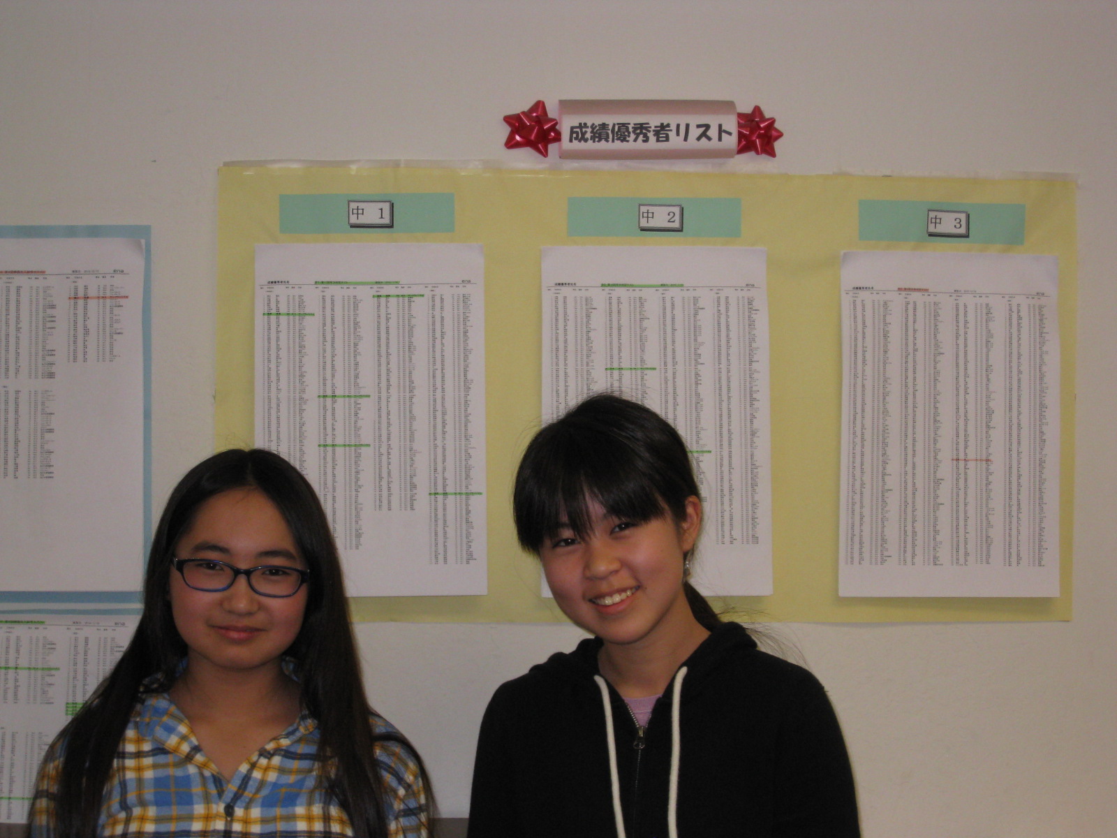 真中の松田君、右の松井さんは2人とも英語でランクインだ! いいぞいいぞその調子だ。