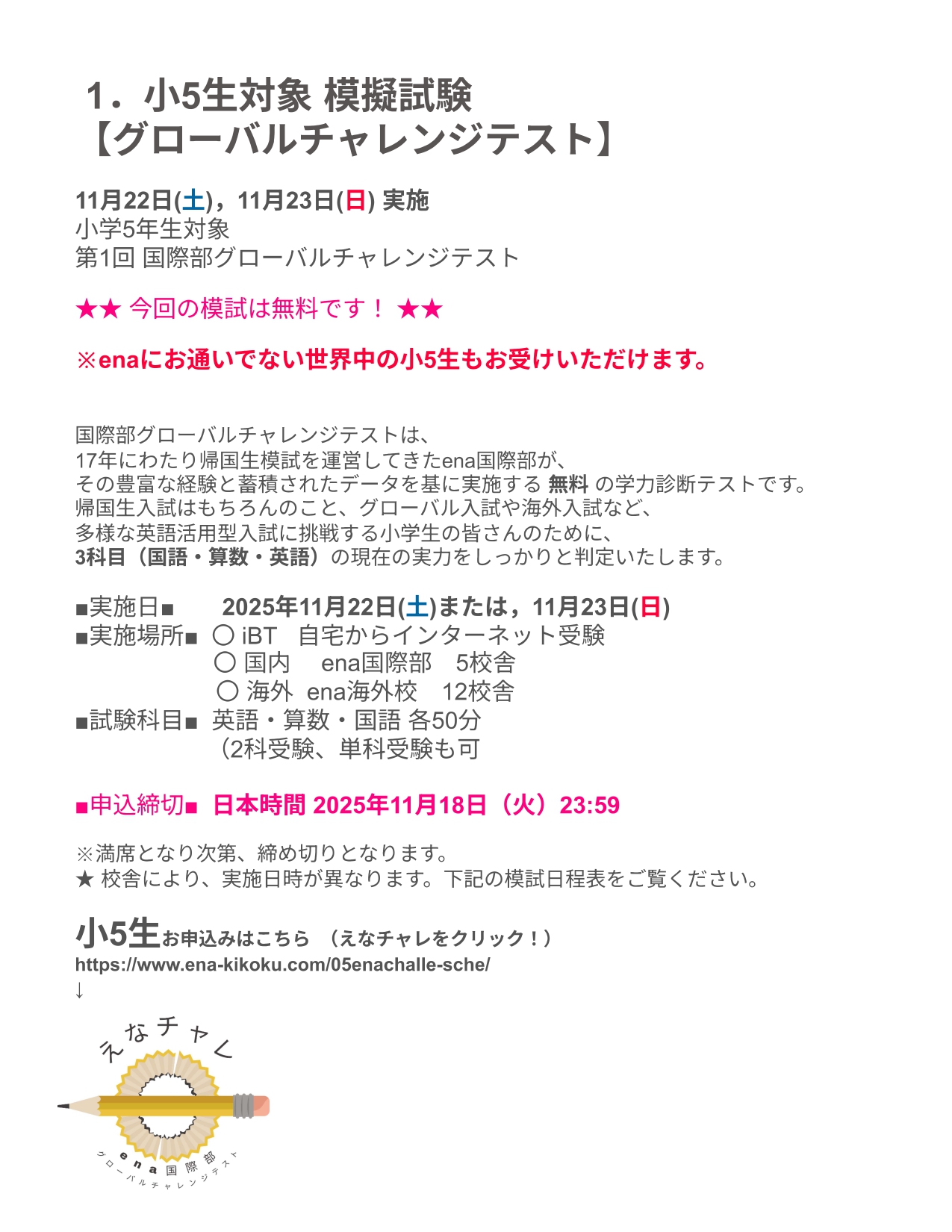 11/22 小5生対象 グローバルチャレンジテスト(無料)