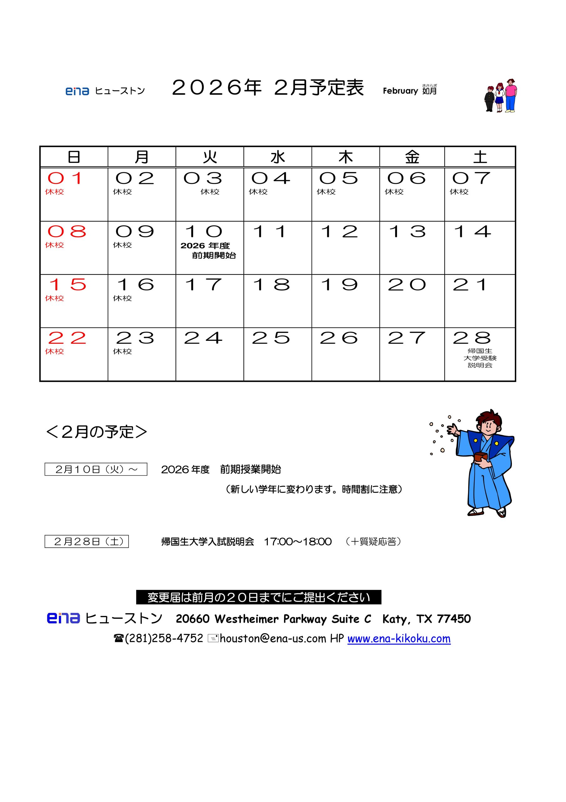2026年 2月カレンダー