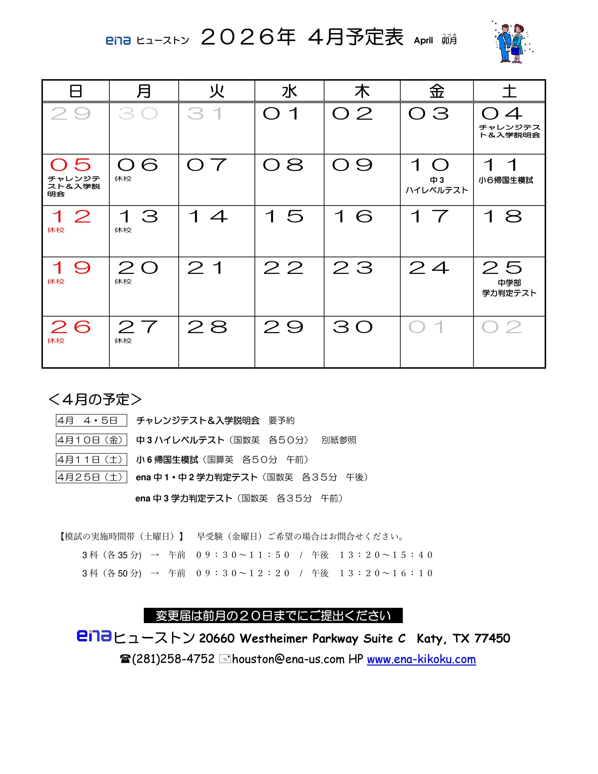 2026年 4月カレンダー