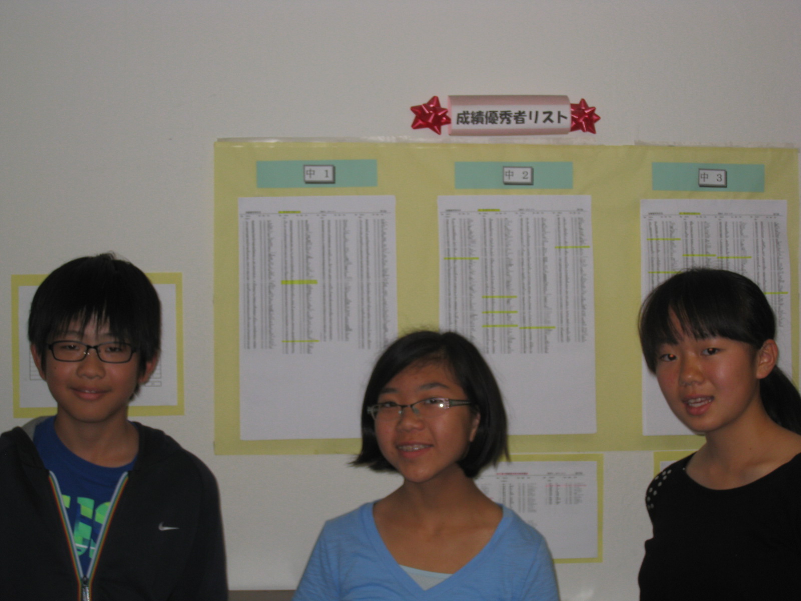 そして、村上君(左)、角田さん(右)そして、第一回模試の英語部門で中1初の優秀者に選出された